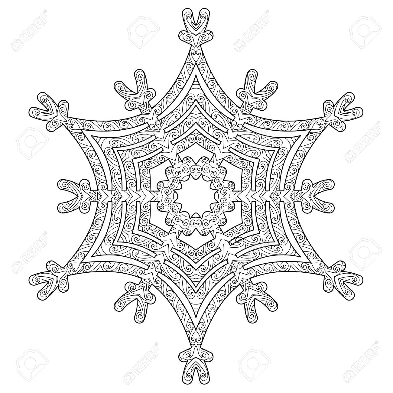 Hand Drawn Antistress Snowflake Tracery Template In Zentangle