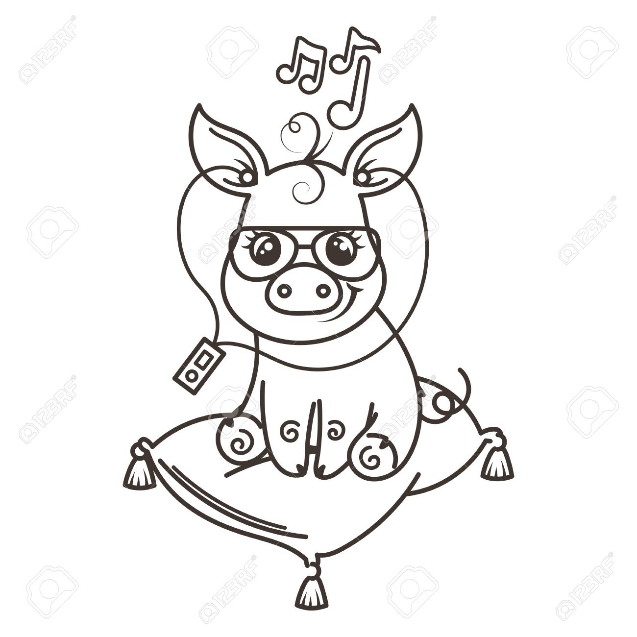 Cute Cartoon Baby Pig In A Cool Sunglasses Vector Illustration